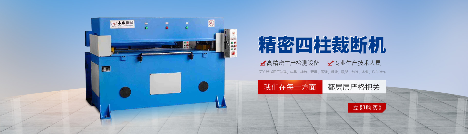 公司專業(yè)制造l 2T一25T液壓搖臂式裁斷機(jī):25T一30T液壓平面式裁斷機(jī);25T一30T液壓四柱龍門移動(dòng)式裁斷機(jī);25T一100T液壓四柱平面式裁斷機(jī):30T一100T精密四柱式裁斷機(jī)(自動(dòng)進(jìn)料);100T一200T液壓四柱下壓式裁斷機(jī)(自動(dòng)進(jìn)料)和客戶要求的特型裁斷機(jī)械系列。產(chǎn)品規(guī)格齊全,可廣泛適用于制鞋、皮具、箱包、玩具、服裝、帽業(yè)、吸塑、包裝、木業(yè)、汽車裝飾等行業(yè)。